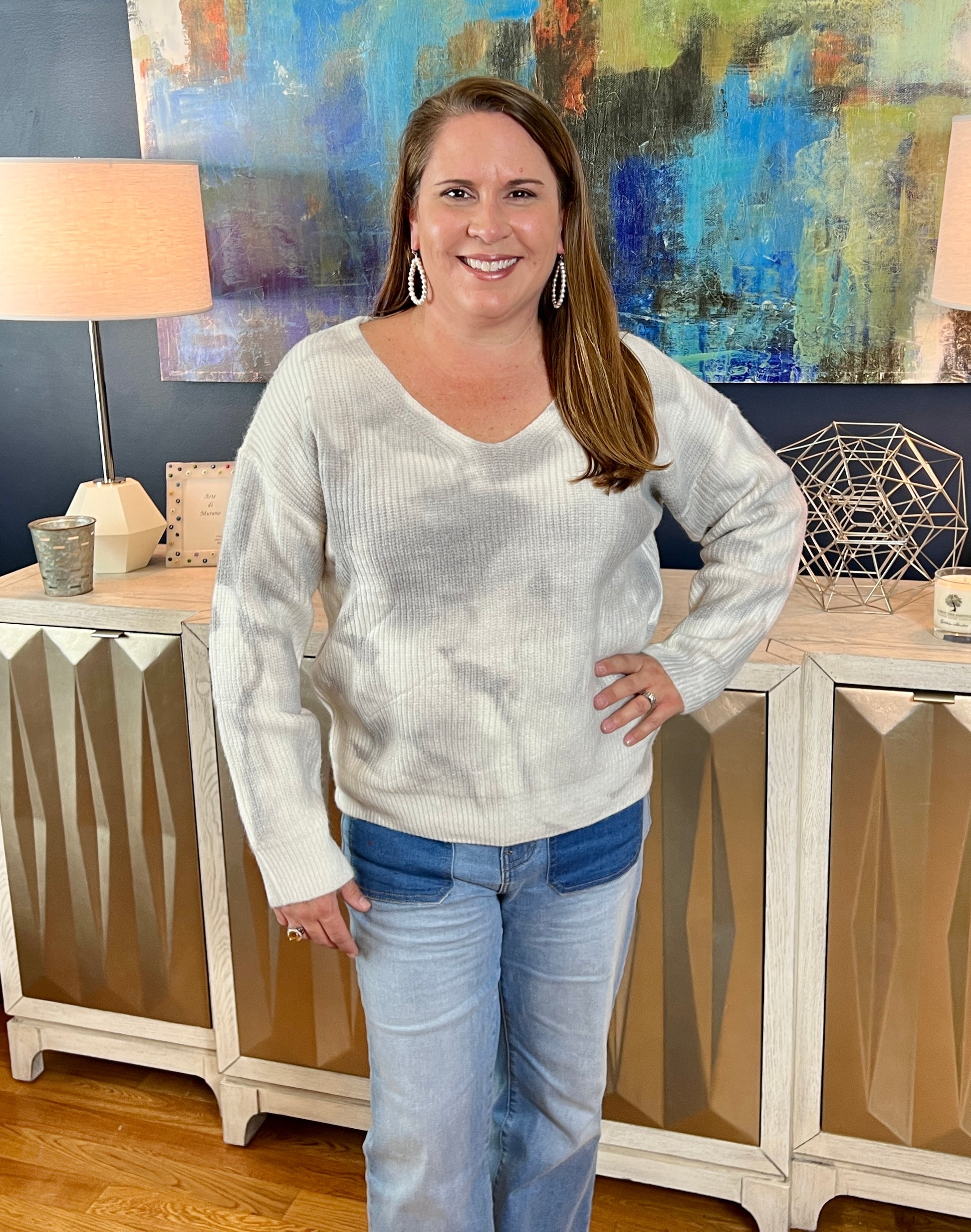 Hand Dipped Blend Knitted Sweater, Dove Grey Multi. Perfect with jeans or dress it up with pants or a skirt.
